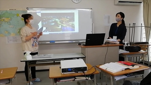 The beginner-intermediate class made a presentation about “famous sightseeing spot in my country”.